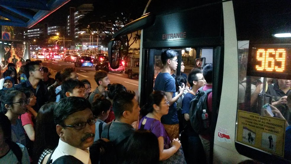 新加坡不久前曾发生地铁最大的两条线路同时全线瘫痪的事件,乘客们虽然被引导以免费巴士替代,但巴士数量没有增加,导致很多乘客甚至必须步行前往目的地,有的回到家已经是深夜了。